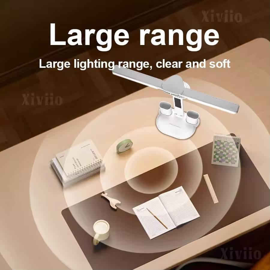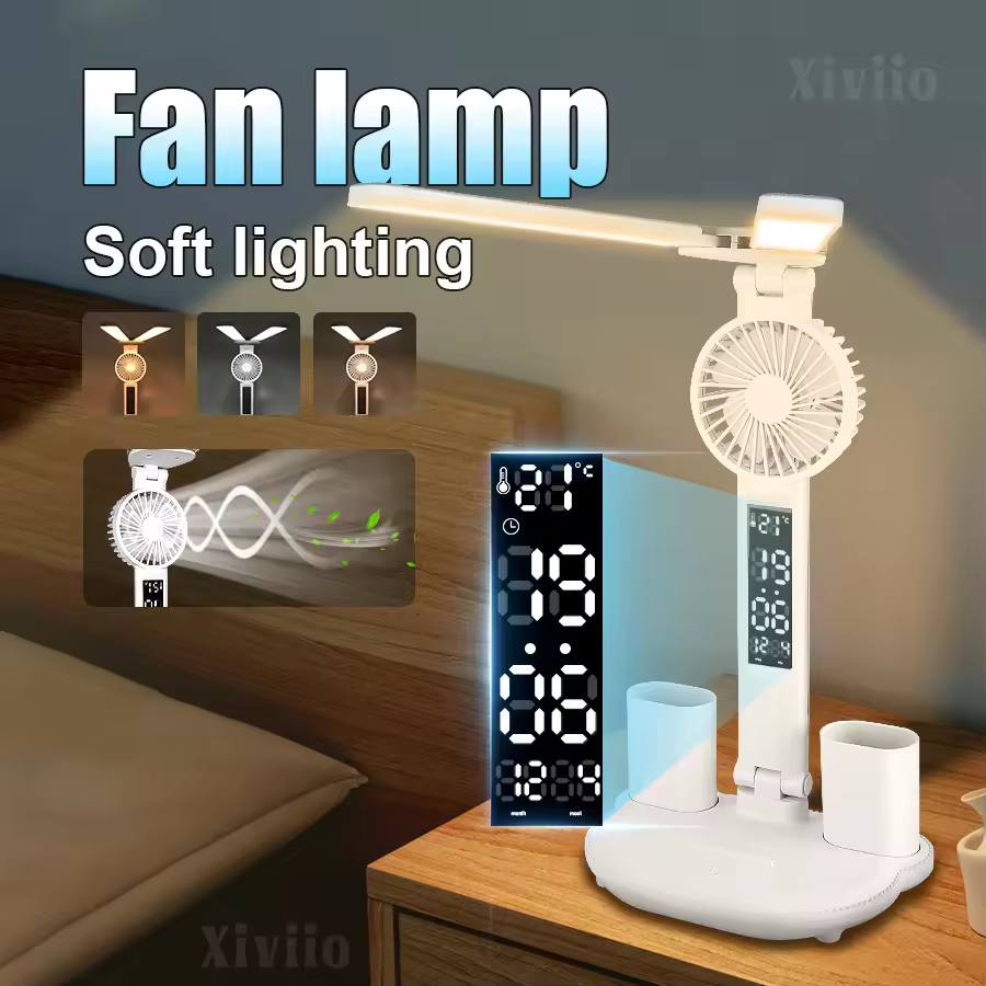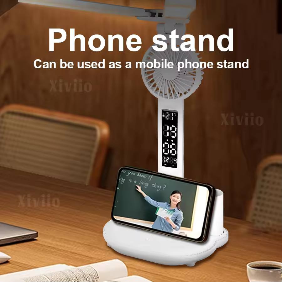 “Multifunction Rechargeable Study Lamp with Silent Fan, LED Display & Phone Stand”